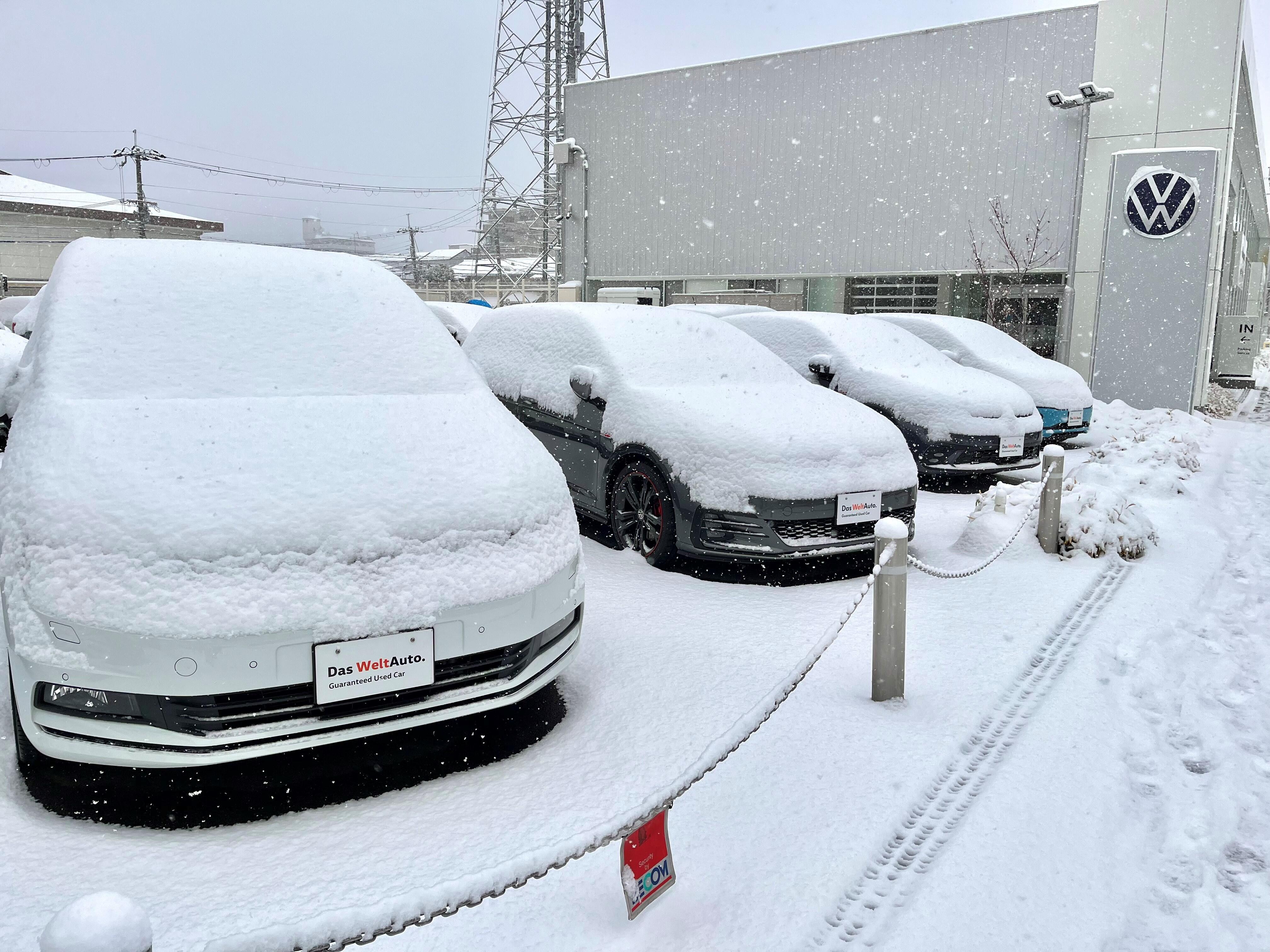 朝一番出社した時はご覧の通り当店のフォルクスワーゲン車も雪だるまになっておりました ☃