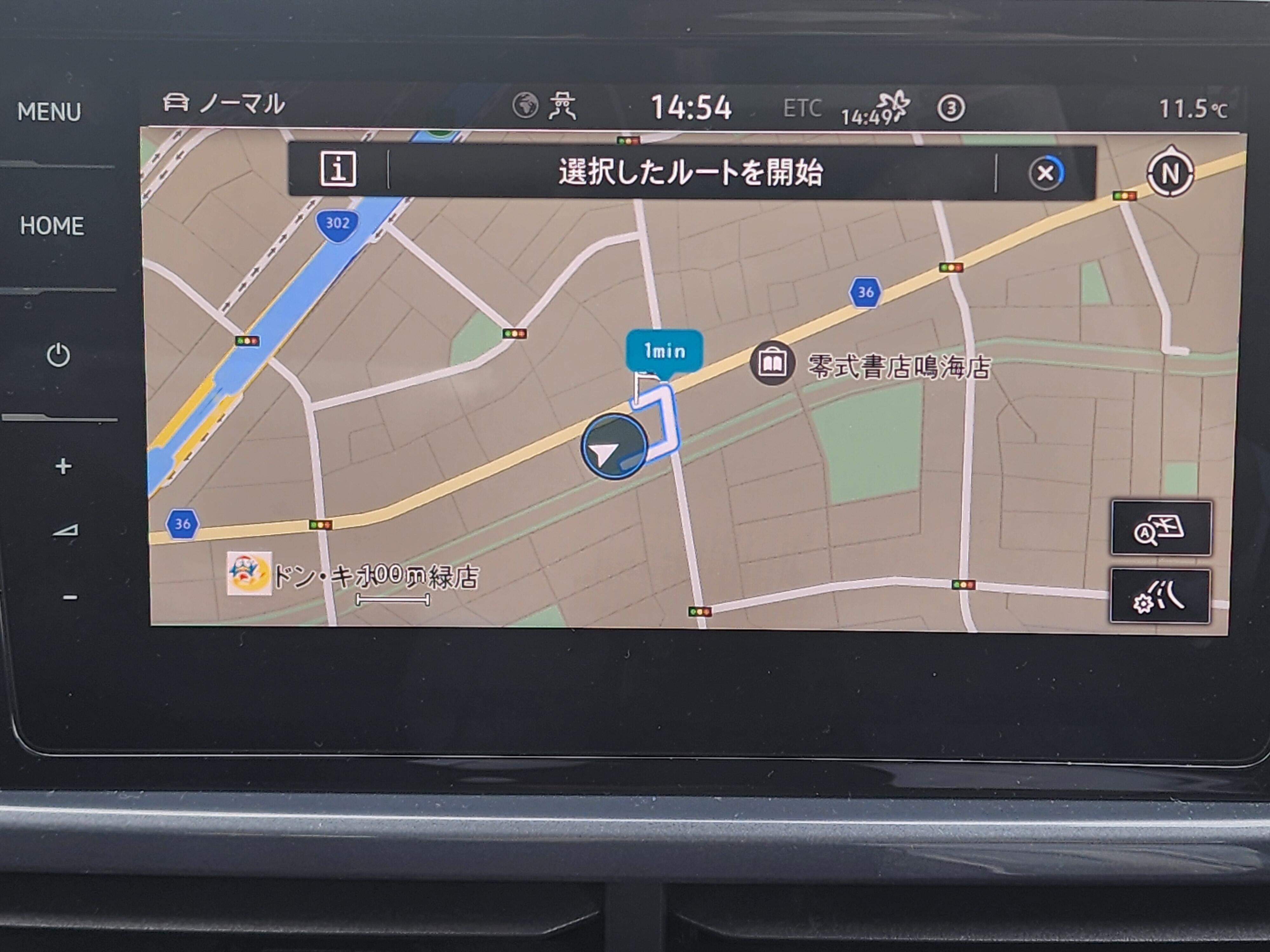 その後、「ナビゲーション」を押して、ナビ画面を表示させます。