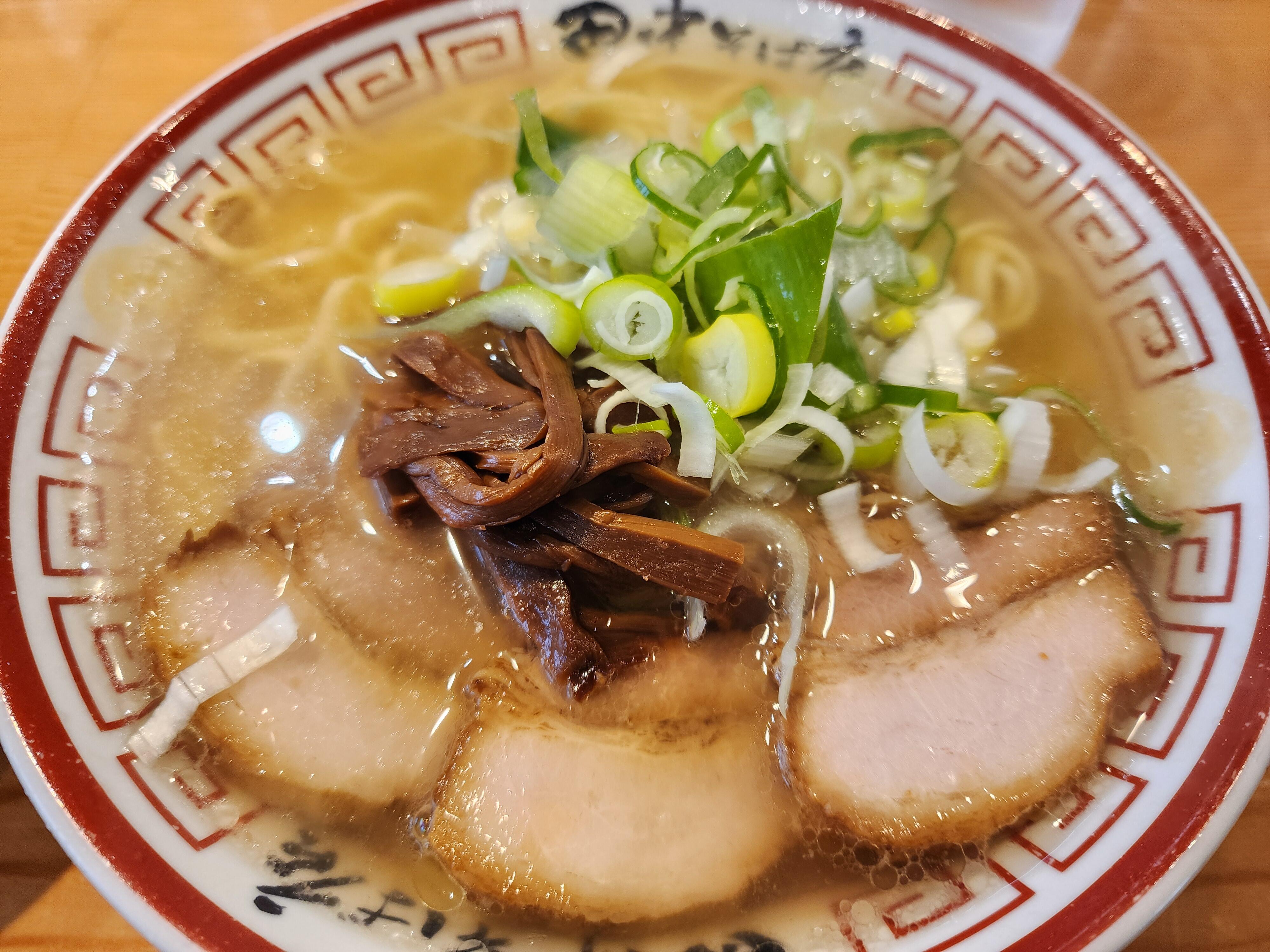ラーメンはスープの色が薄く、これもまた濃い目の豚骨ばかり食べていた私にとっては少し見慣れません。(豚骨ベースではあるらしい)