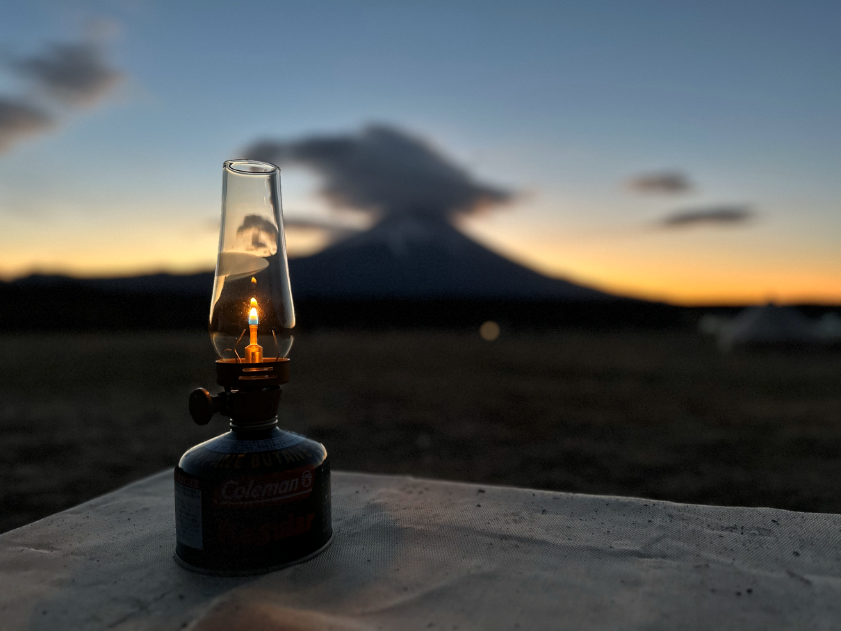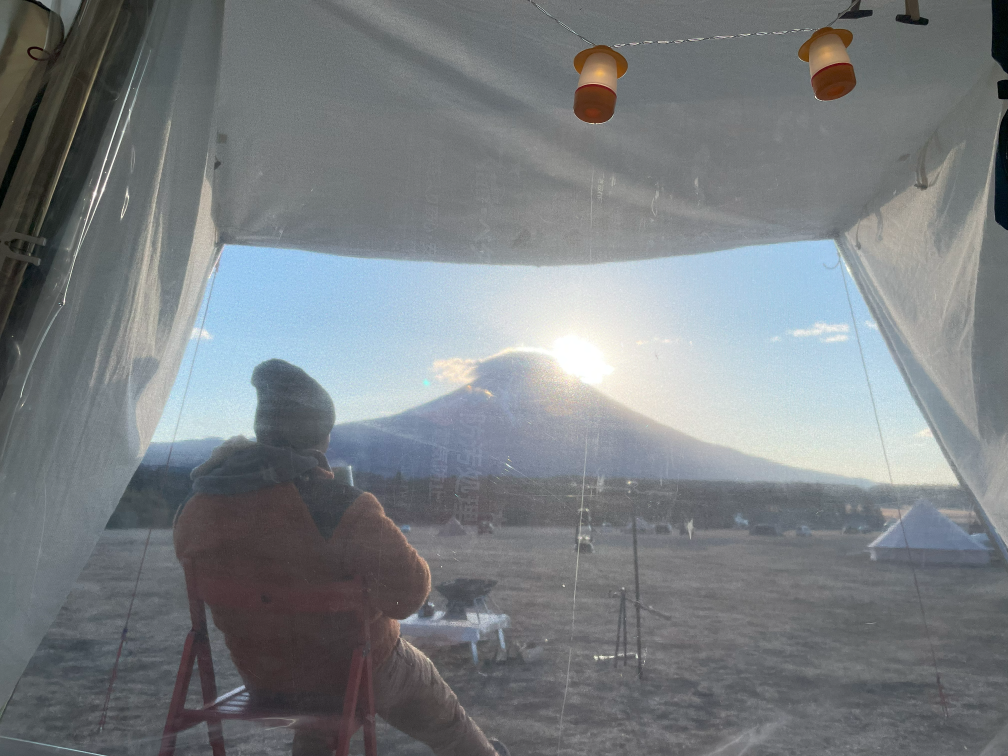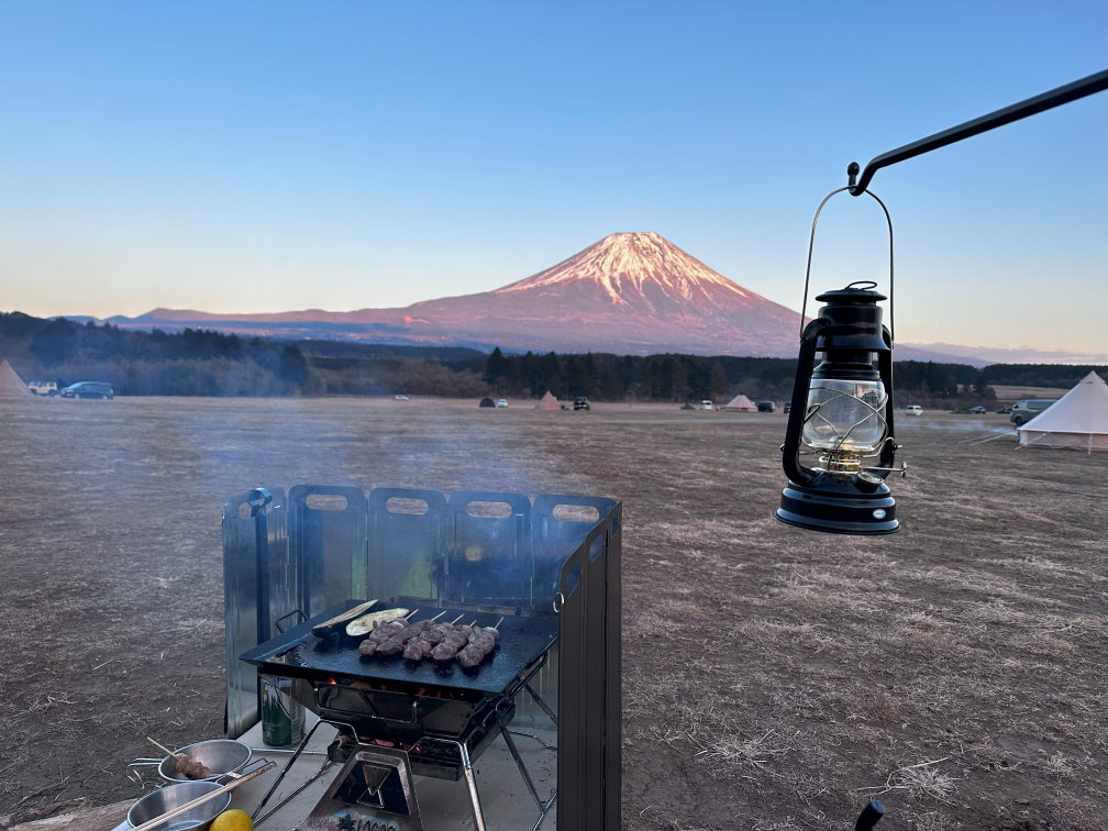 赤く染まる富士山を眺めながら焚き火を始めましょう