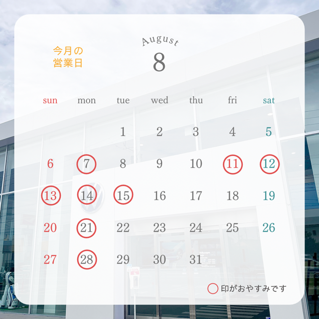 8月の定休日&夏季休業の