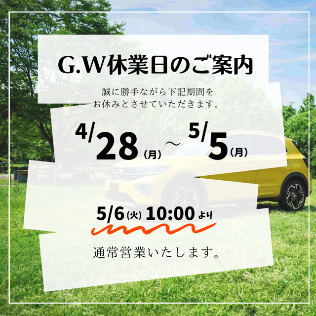 なお、5月6日(火)10:00から通常通り営業いたします。