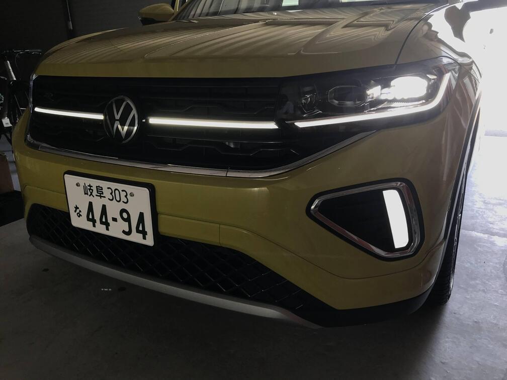 プロジェクター式メインライト発光以外に、VWエンブレムから左右に伸びる直線的な発光も印象的です。