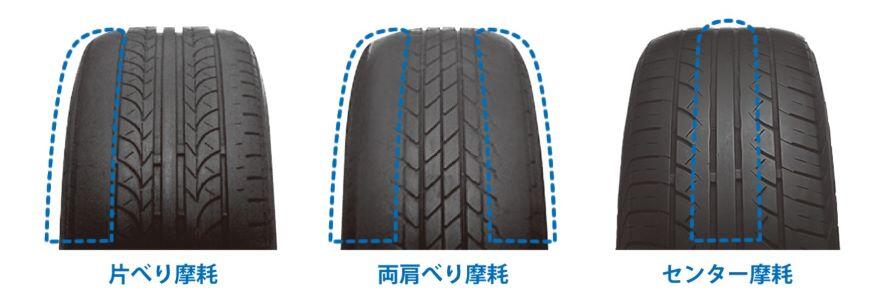一般的に、前輪はショルダー部、後輪はセンター部の摩耗が起こりやすく、
