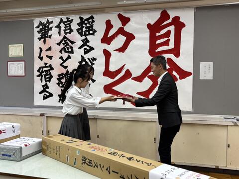 先日行われた『第14回うどん県書道パフォーマンス大会』にて奨励賞フォルクスワーゲン香川賞を受賞された高松北高校書道部の皆さまに記念品をお渡しさせていただきましたおめでとうございます受賞された貴重な作品は9月末までフォルクスワーゲン香川ショールームにて展示中です迫力があり観ていると力強いパワーを感じます。ぜひ、実際にご覧ください.書道パフォーマンス大会、大変おつかれさまでした!!..#うどん県 #書道パフォーマンス大会 #高松北校 #北高#フォルクスワーゲン香川賞 #奨励賞#おめでとうございます#vw香川 #volkswagen香川