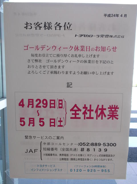 ゴールデンウィーク休業のおしらせです