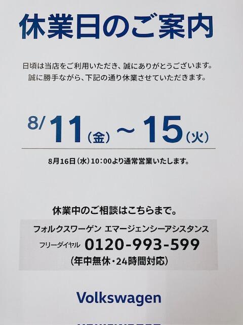夏季休業のご案内です。