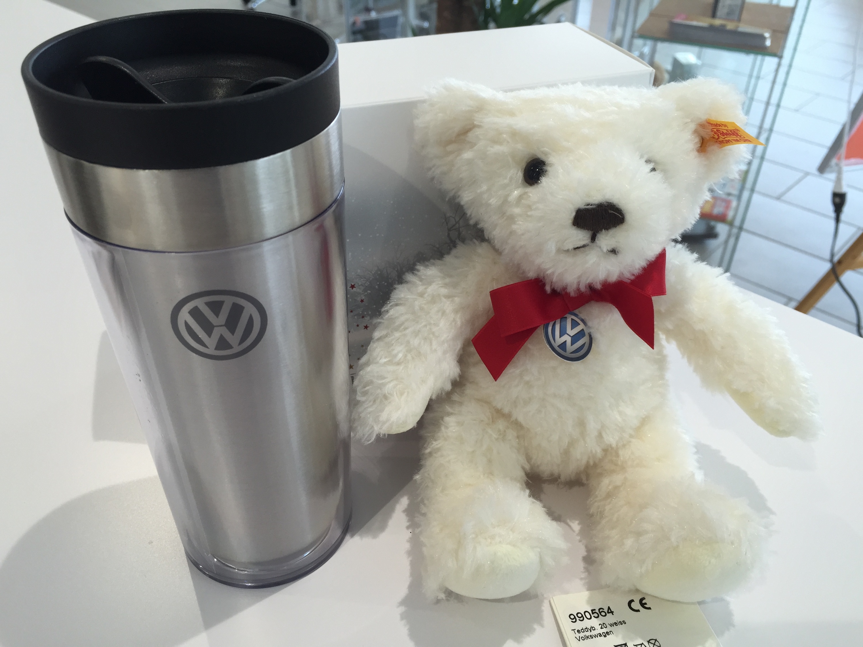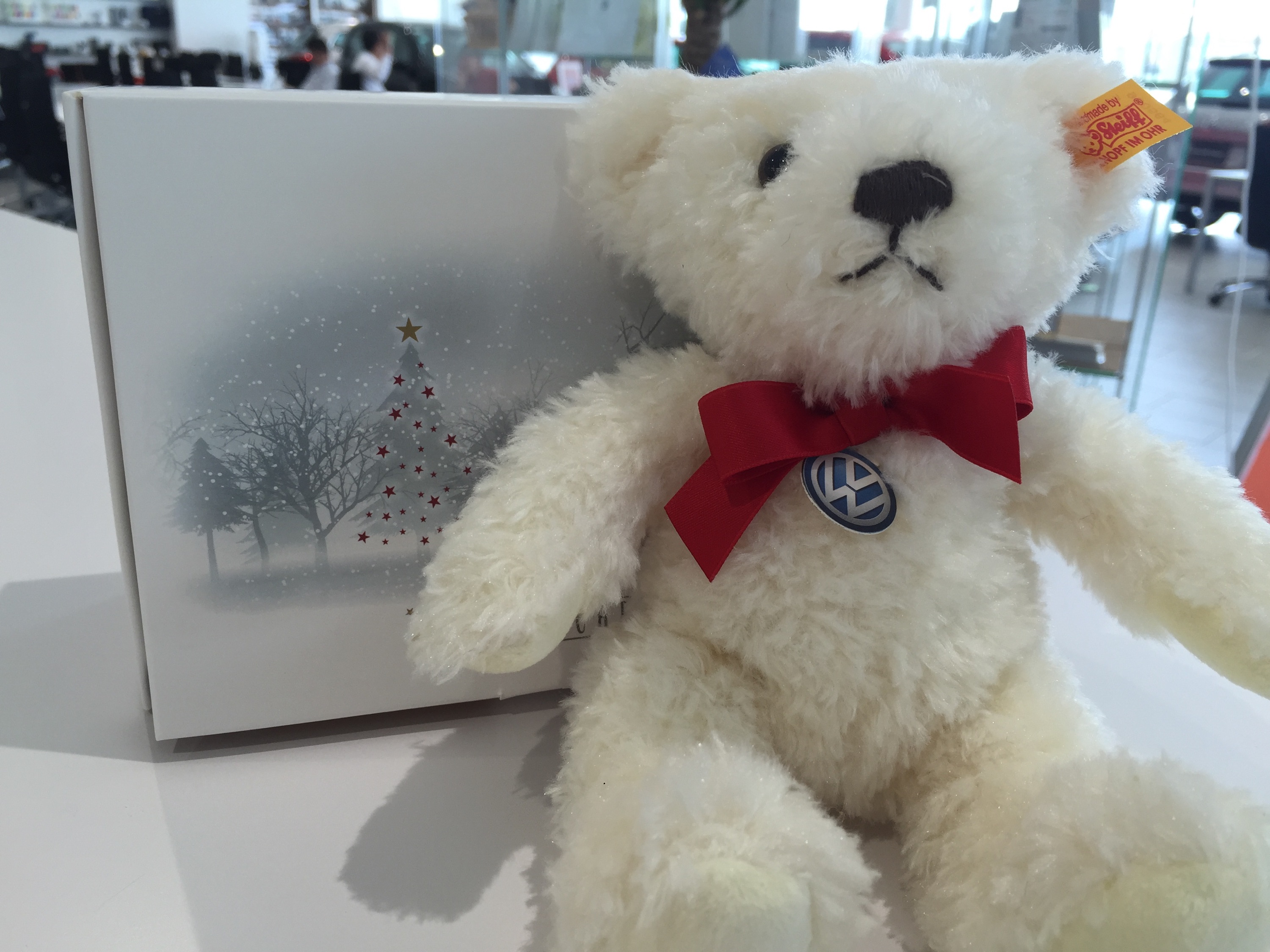 1.シュタイフ テディベア ホワイト レッドスカーフ