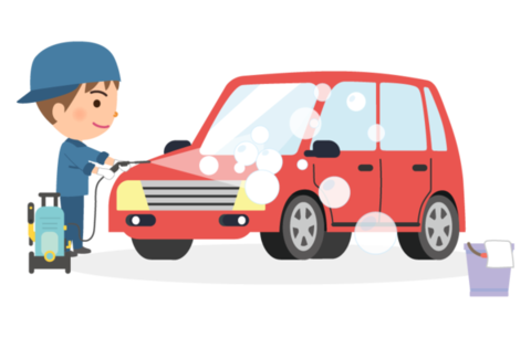 5月の良く晴れた日、中古車として販売する予定の車を