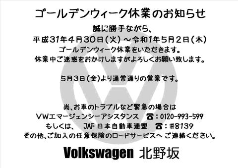 誠に勝手ながら、4月30日?5月2日までGW休業をいただきます。