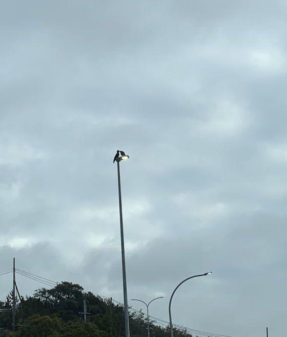 朝の通勤の時間に、街灯に鳥さんがとまっているのをよく見かけます。