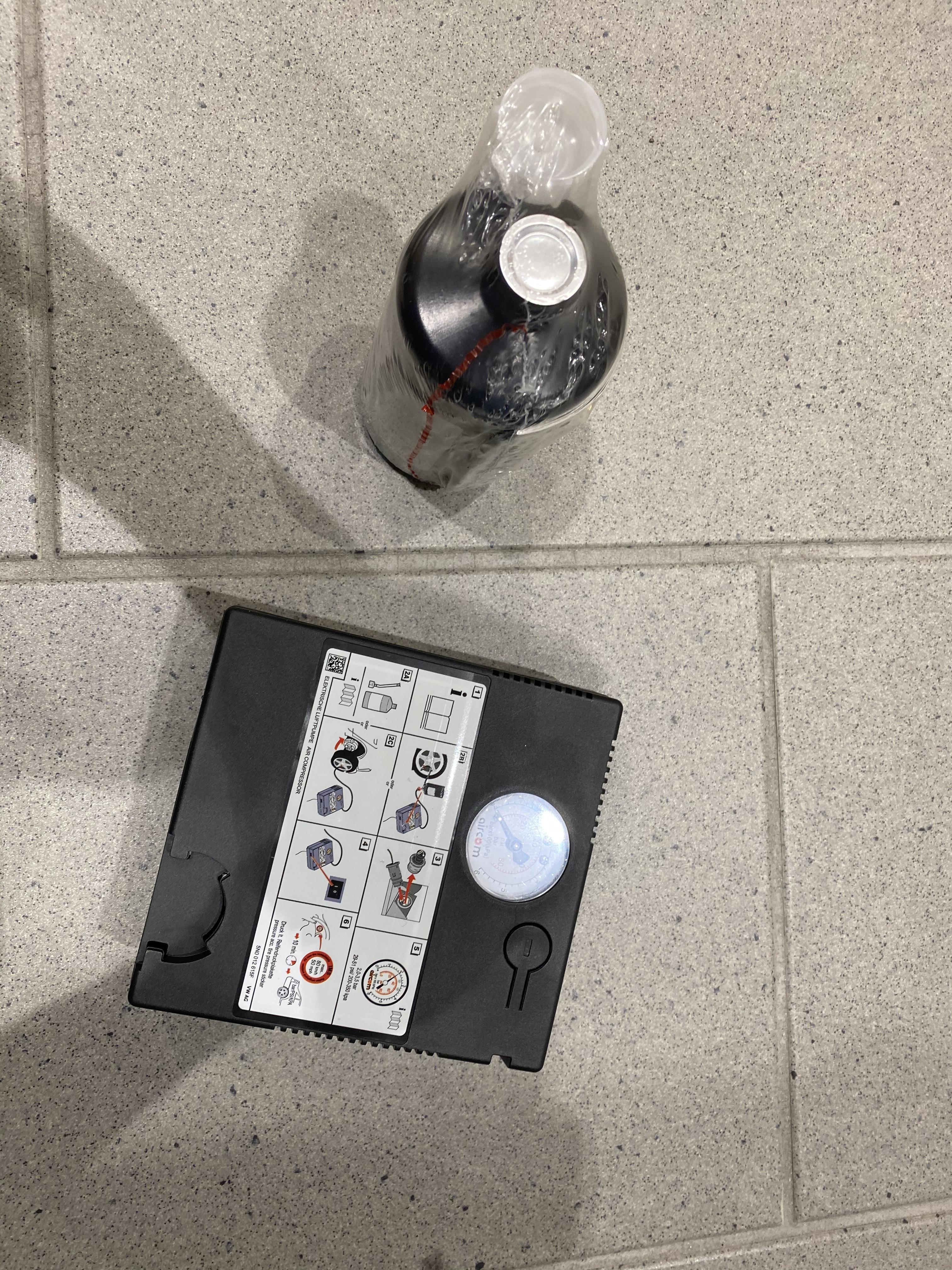 幸いもトランクにパンク修理キットが積んであるため、