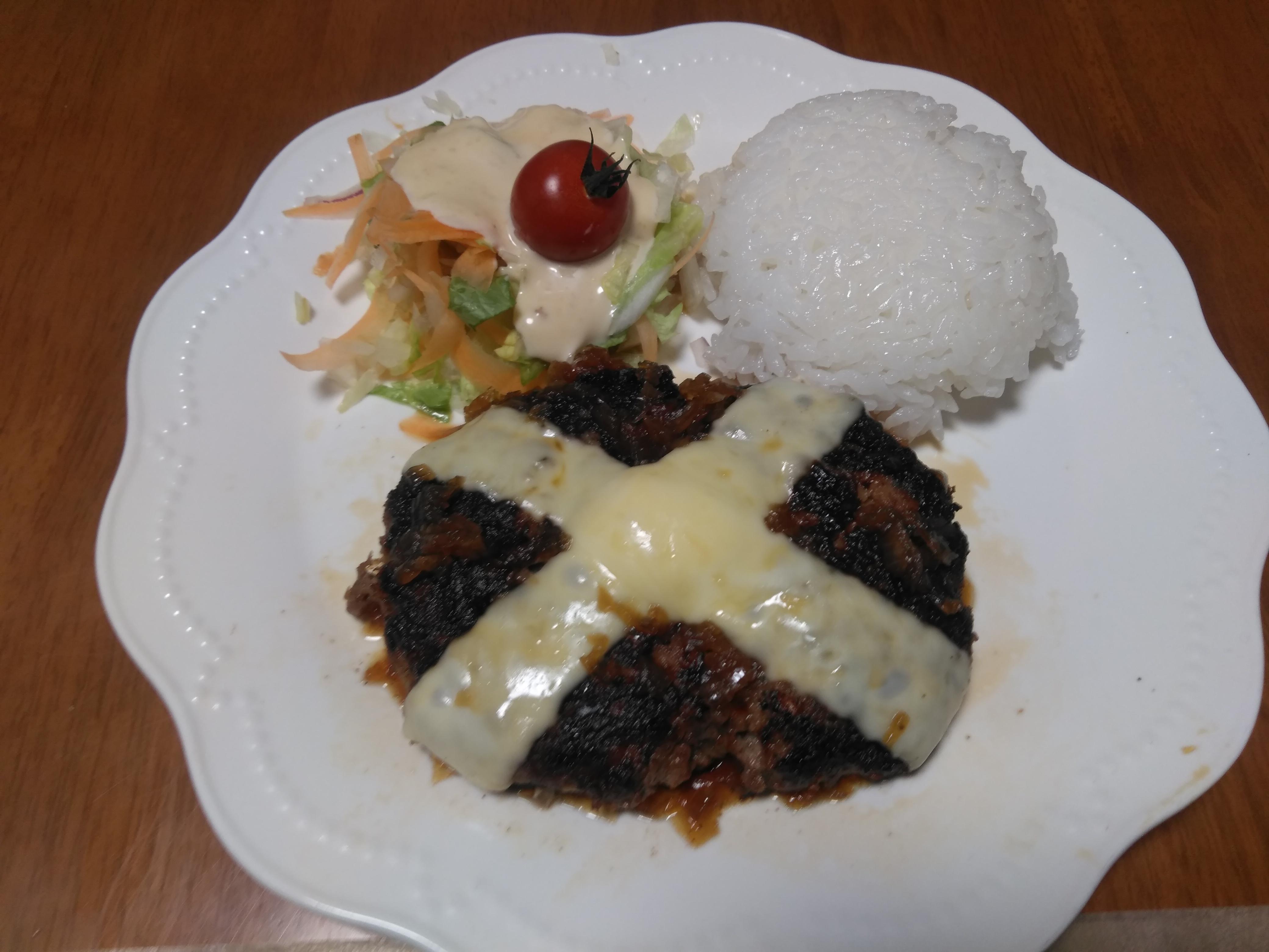 かな。やっぱりお皿は木皿ですね。より雰囲気が出そうです。またリベンジしようと思います。当面我が家のご飯はハンバーグが続くと思います。