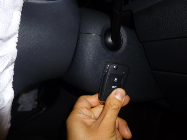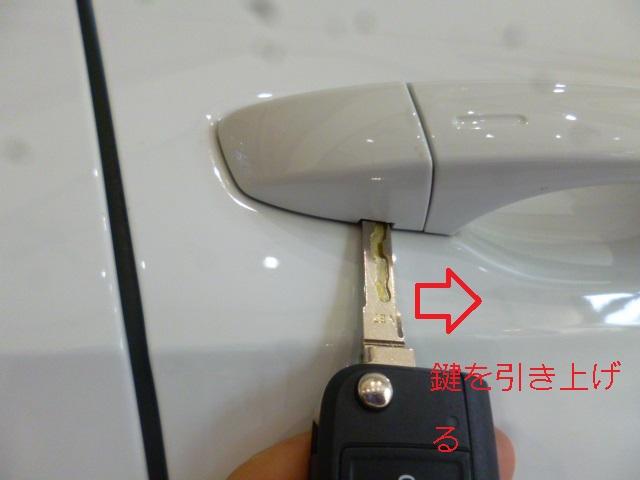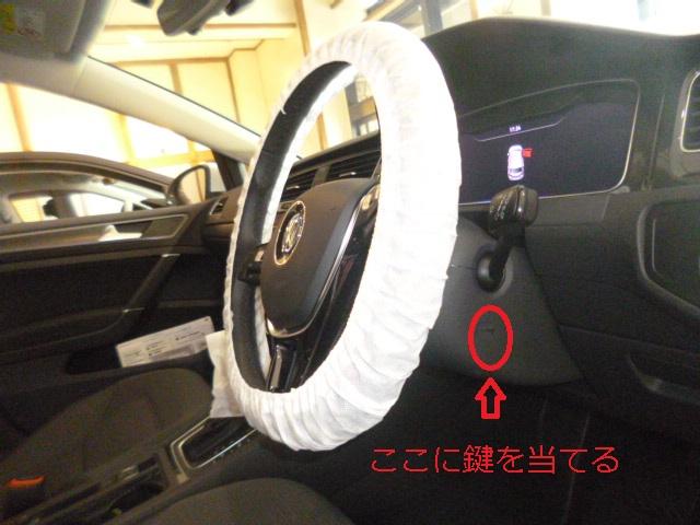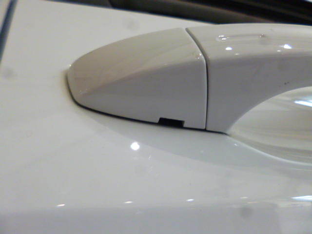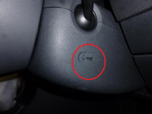 ドアが開きますとハンドルの付け根、今までキーを差し込んでいた辺りに、鍵と電波のマークがあります。