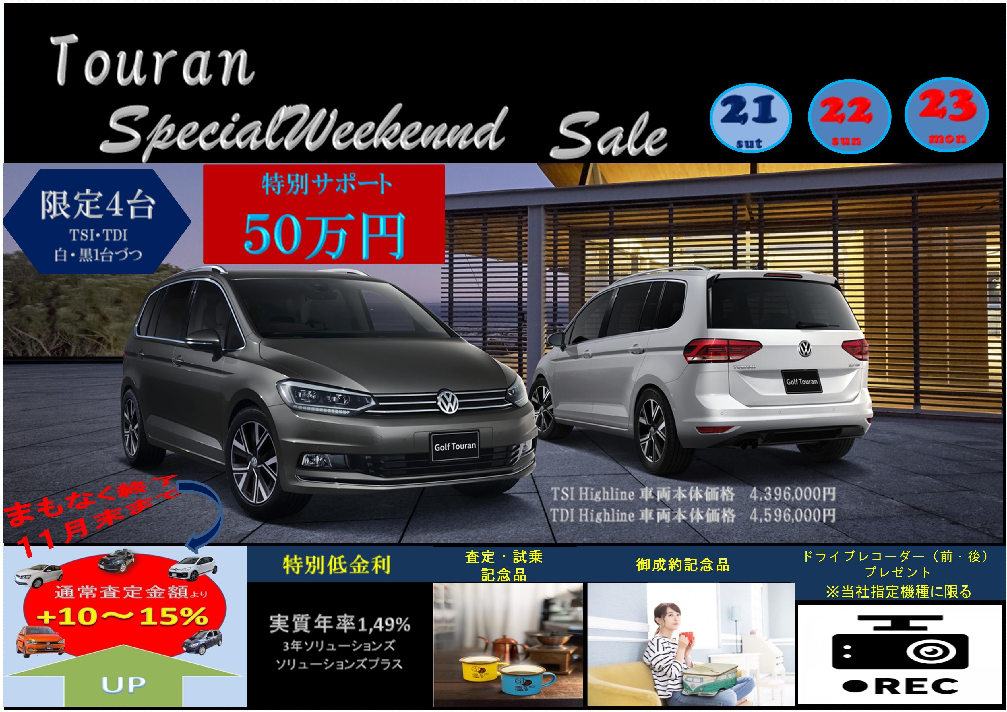 特別なサポート、下取り買い増しキャンペーン(11月末まで)、御試乗プレゼント(Touranの試乗車あります)等など