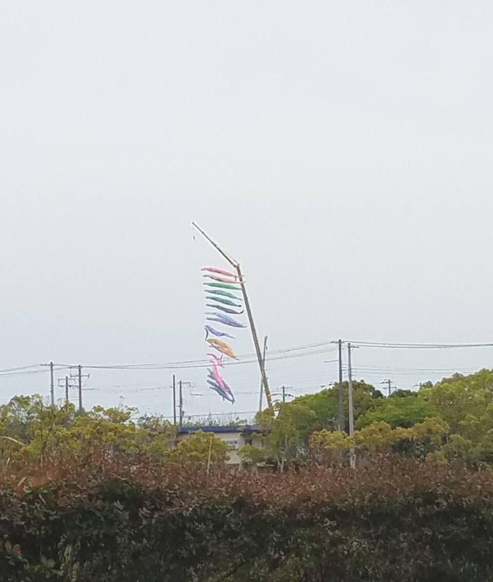クレーン車で 鯉のぼりが あがっていました