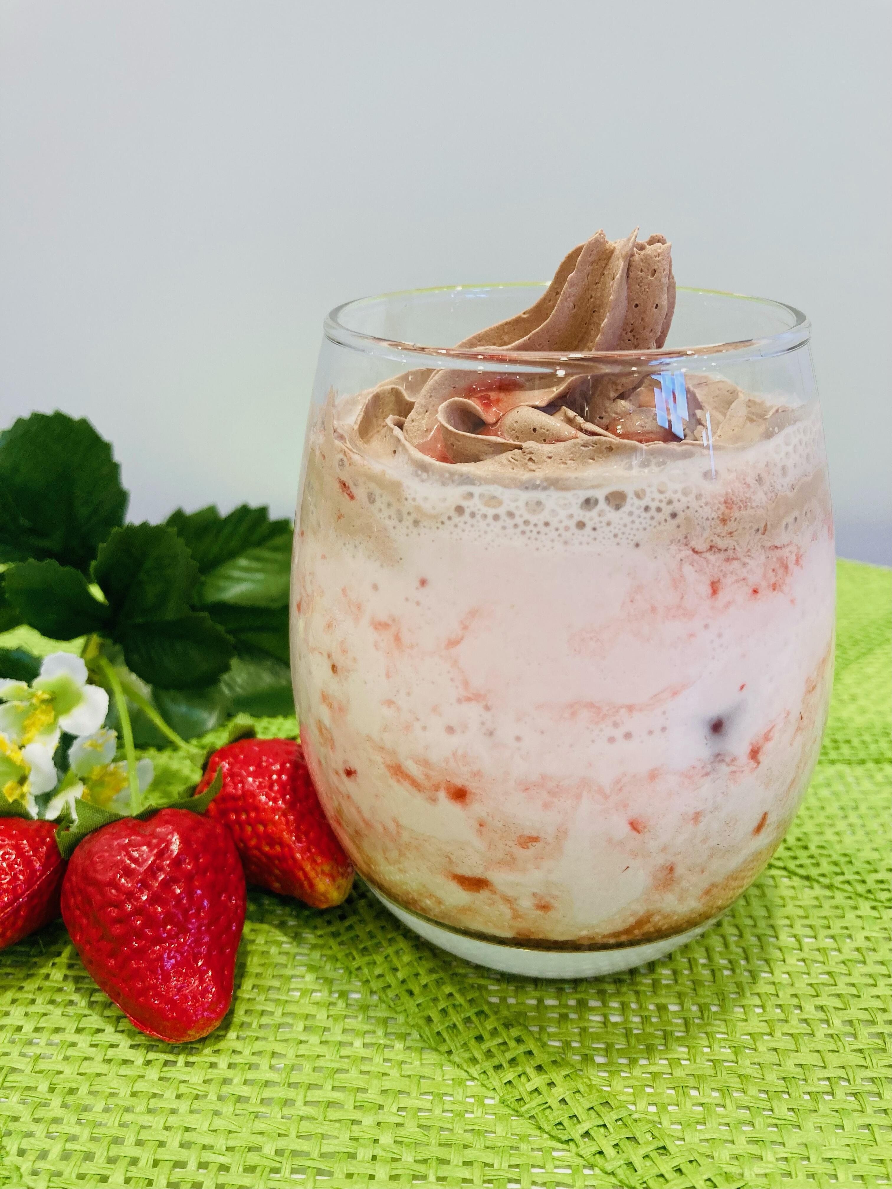 イチゴのフラッペ(フローズンドリンク)に相性ぴったりのチョコホイップを添えてみました