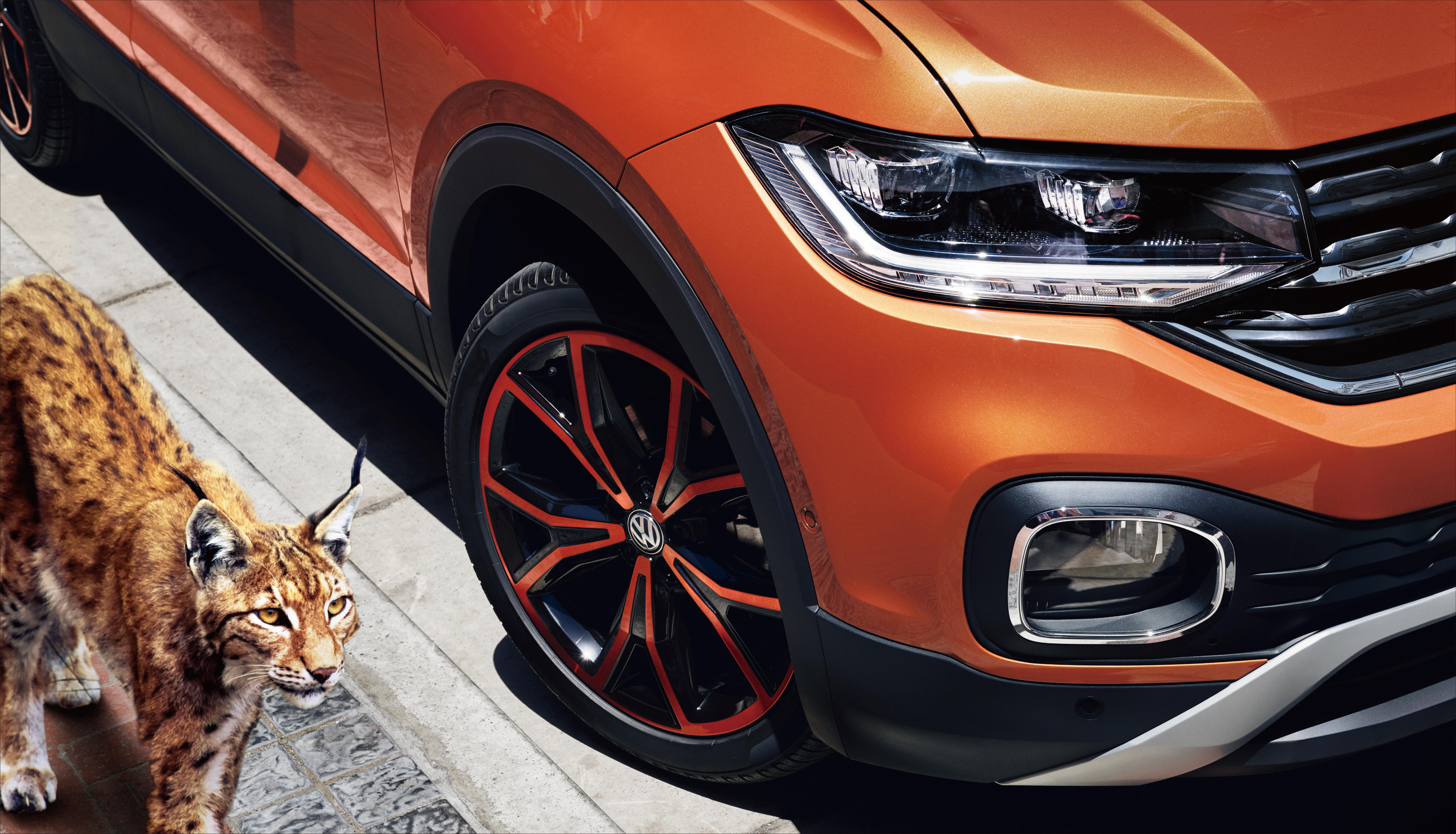 試乗車はT-Cross 1st Plus/ボディカラー:エナジェティックオレンジメタリックです。