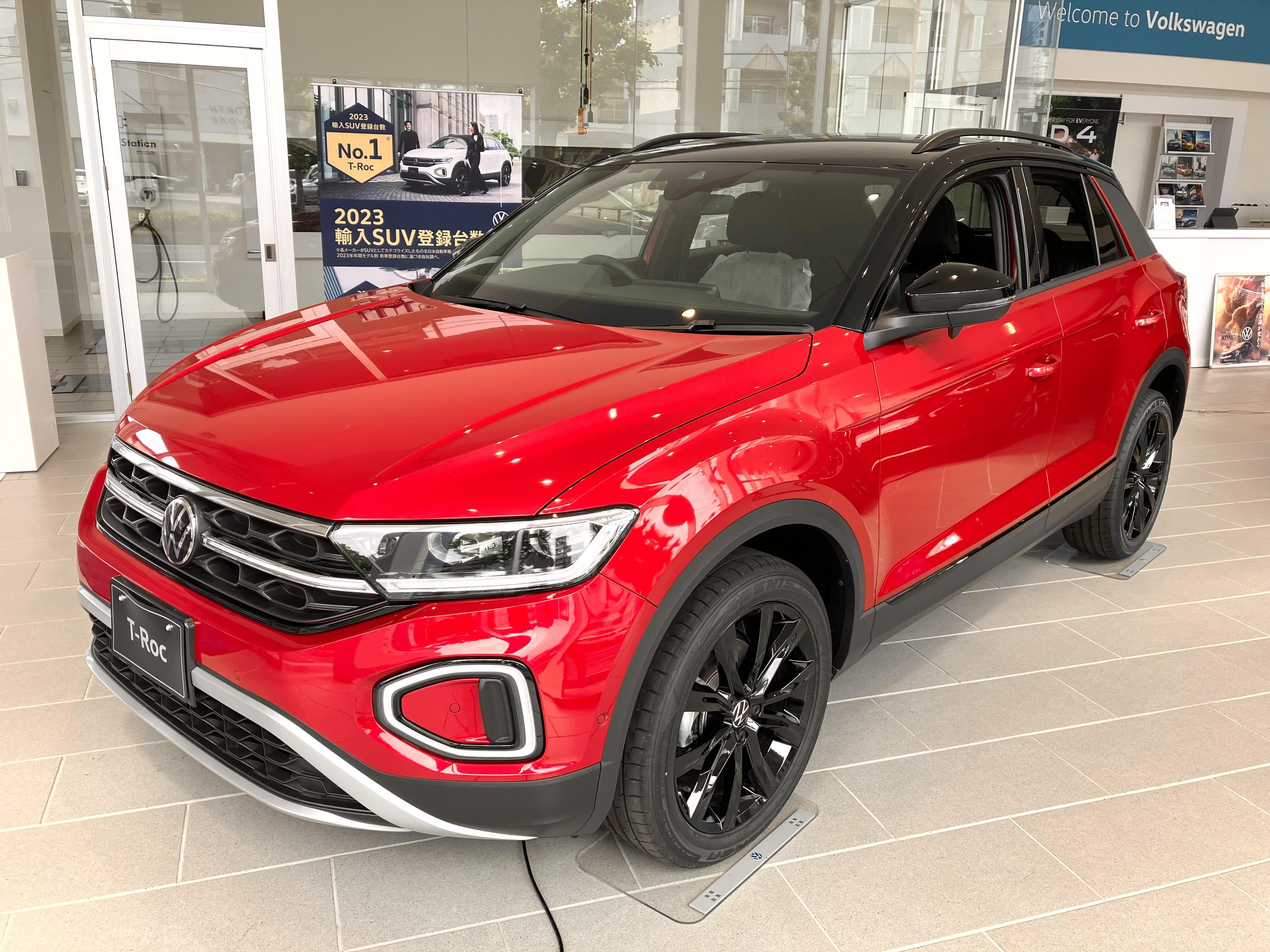 キングズレッドメタリックは明るい色合いの赤ではなく、深みと落ち着きを感じるダークトーンの赤色ですので、ブラックとのコントラストがとても上品でシックな印象で、T-Rocの流麗なクーペスタイリングの美しさを更にを引き立てます ✨