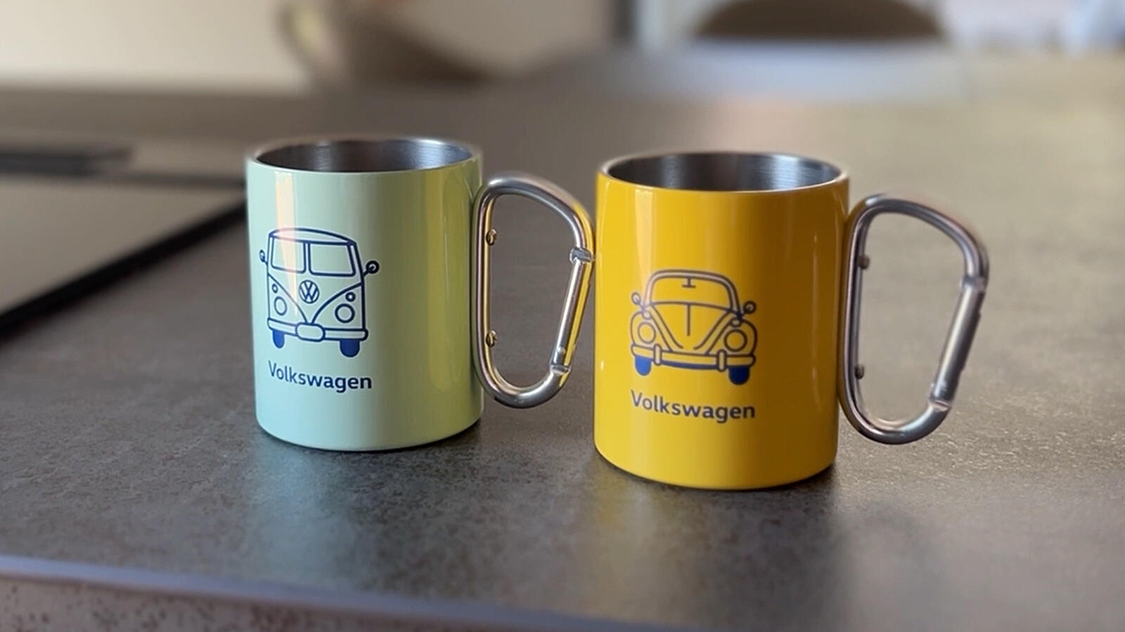 取っ手がカラビナになっており、デザイン面だけでなくアウトドアにも大活躍しそうなペアマグカップです 🏕