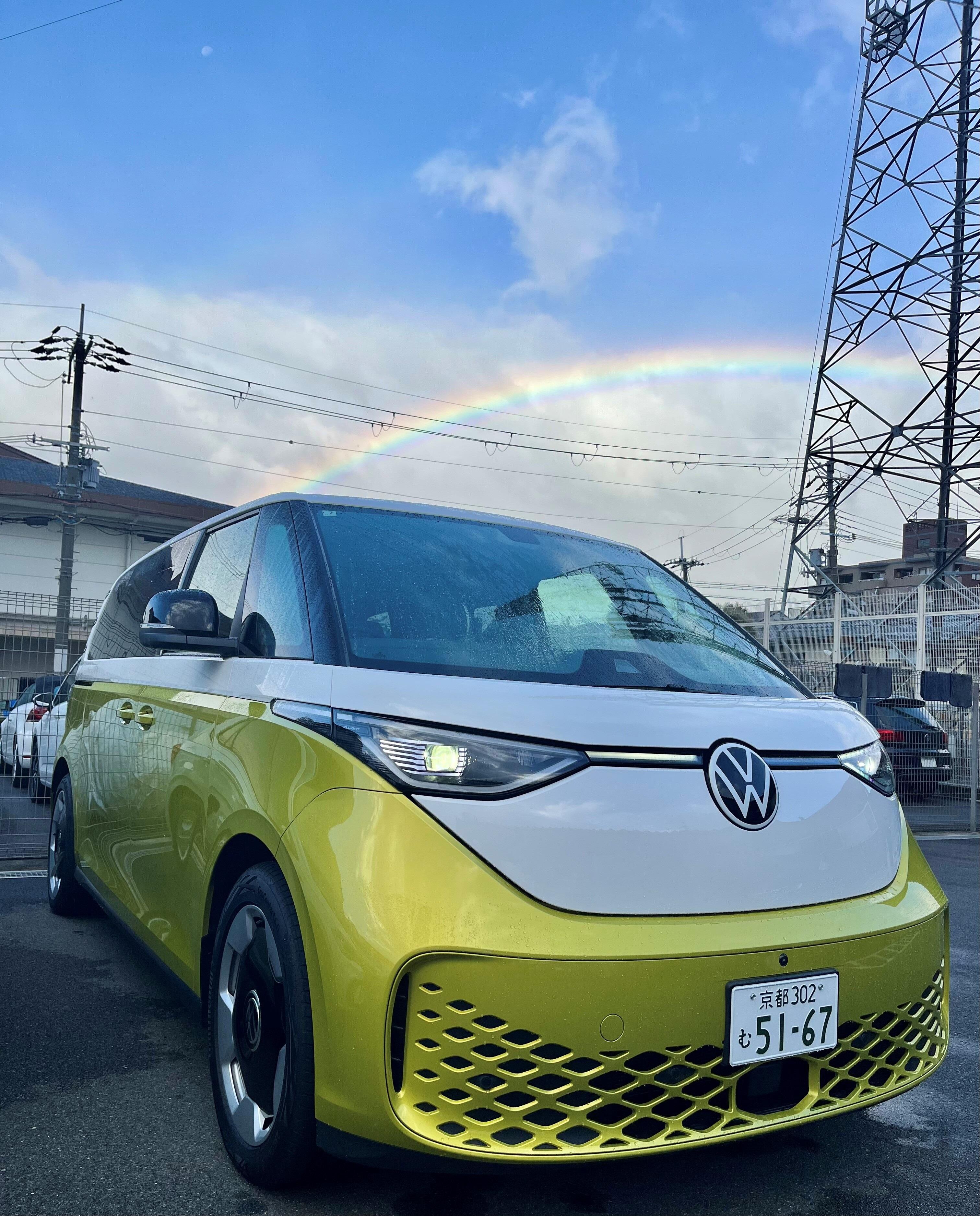 まるでID.Buzzを呼び止める合図のように輝いていて、思わず記念撮影をしてしまいました🌈