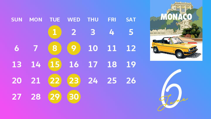 6月は火曜日の定休日と9日・23日・30日の水曜日も