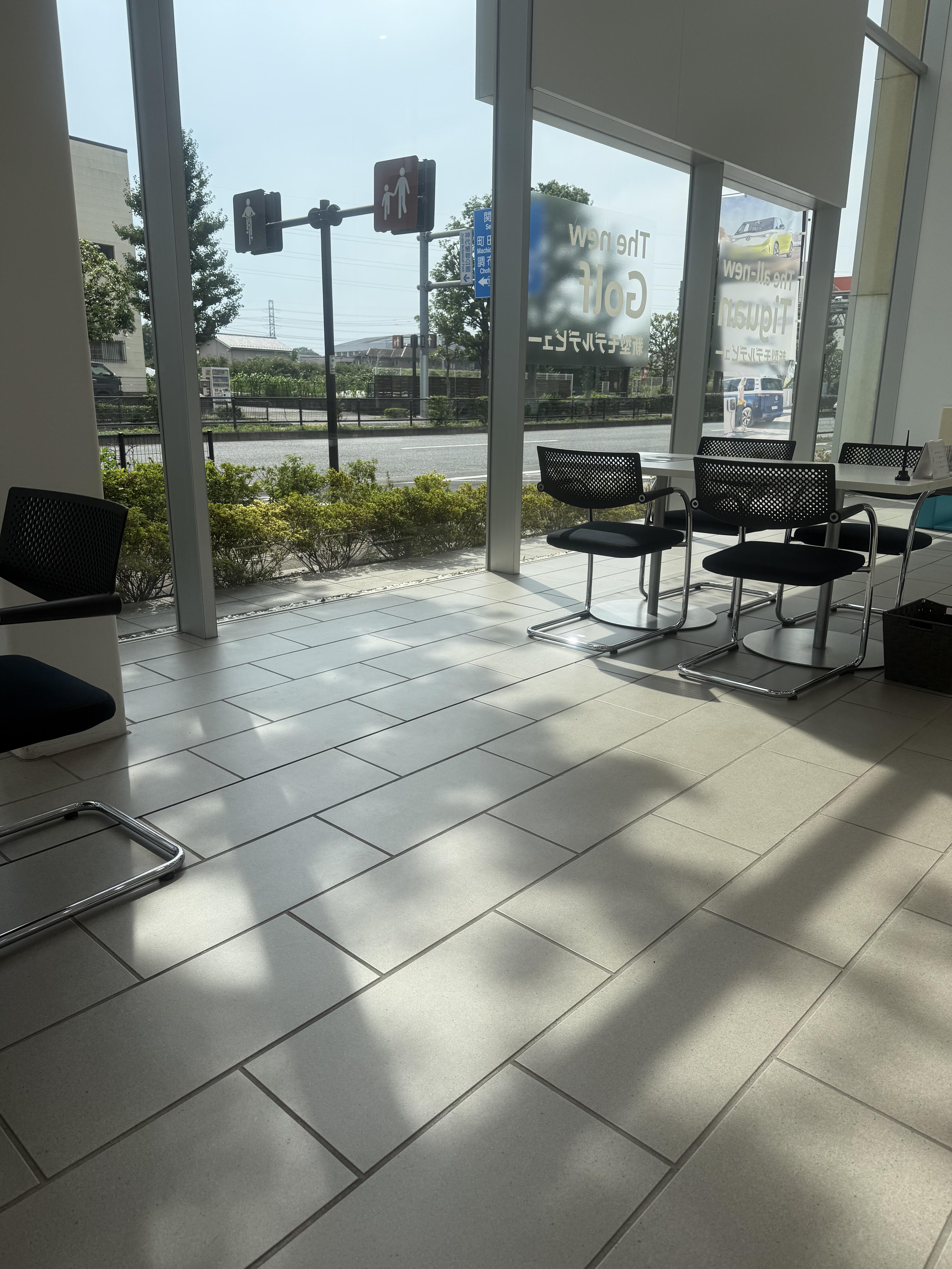 ショールーム内に影がうつります。