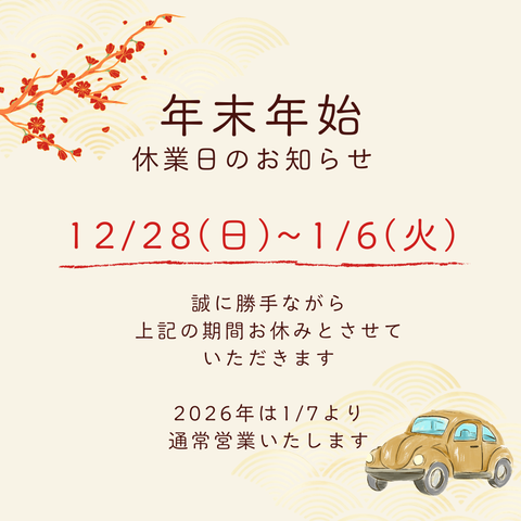 2026年は1月7日(水)10:00より通常営業いたします。ご不便をおかけいたしますが何卒よろしくお願いいたします。