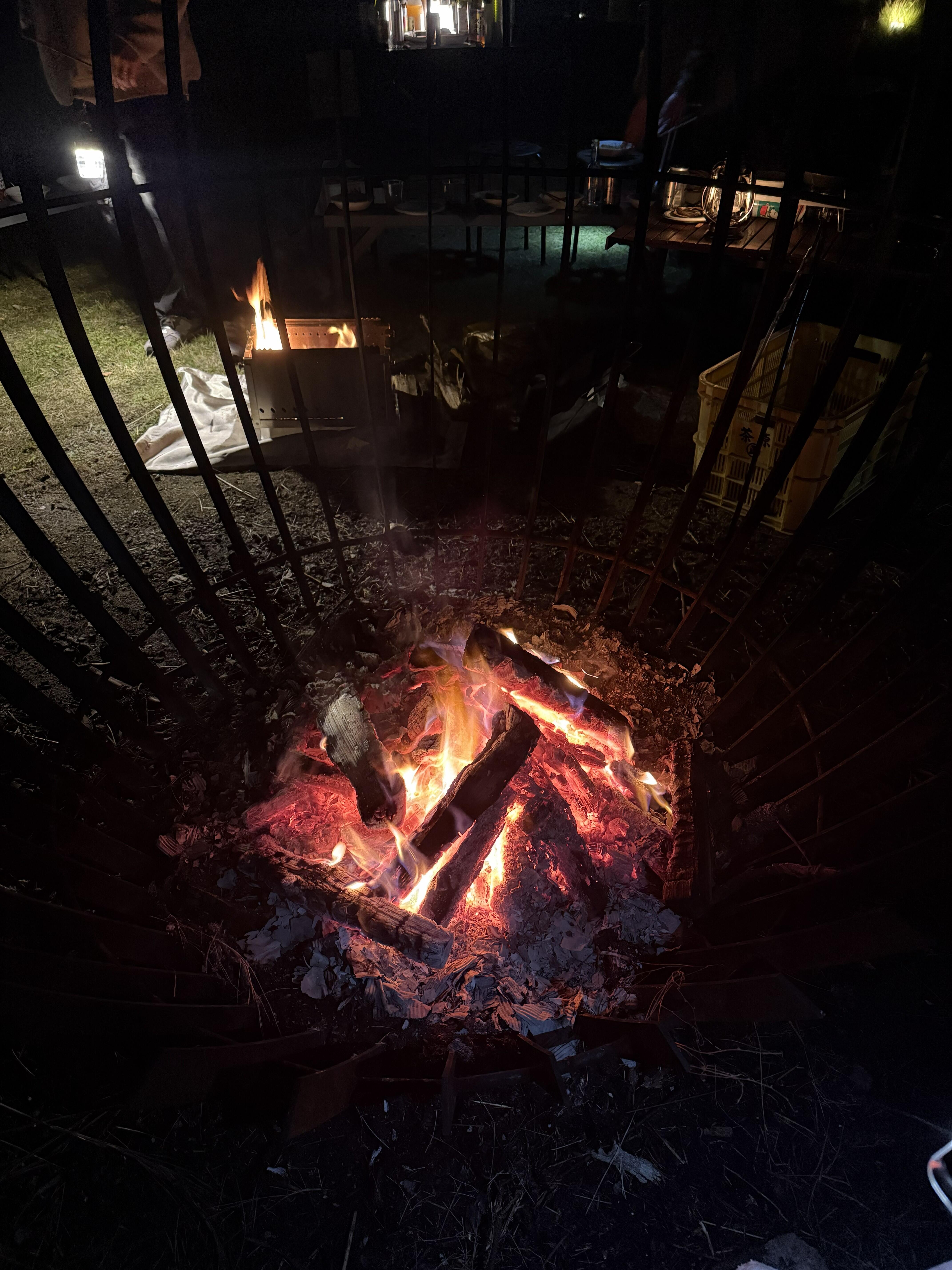 BBQやビンゴ大会をしたり、海沿いでとても冷え込んでいたので夜空を見ながら焚火で温まったり