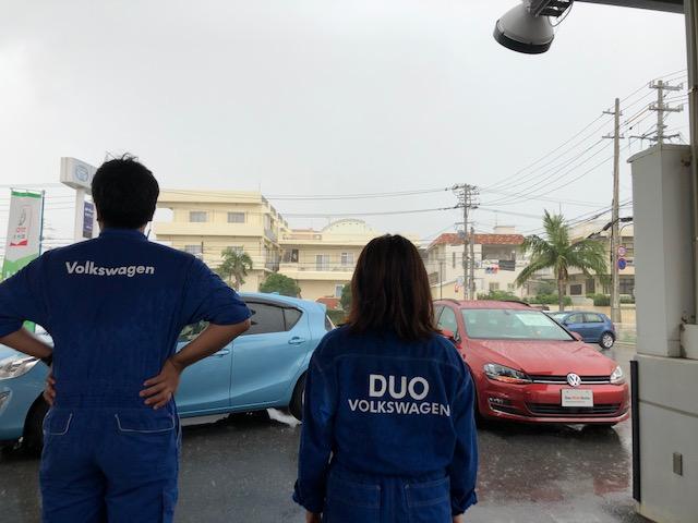営業スタッフで北谷ランドの展示車もしっかりお手入れ
