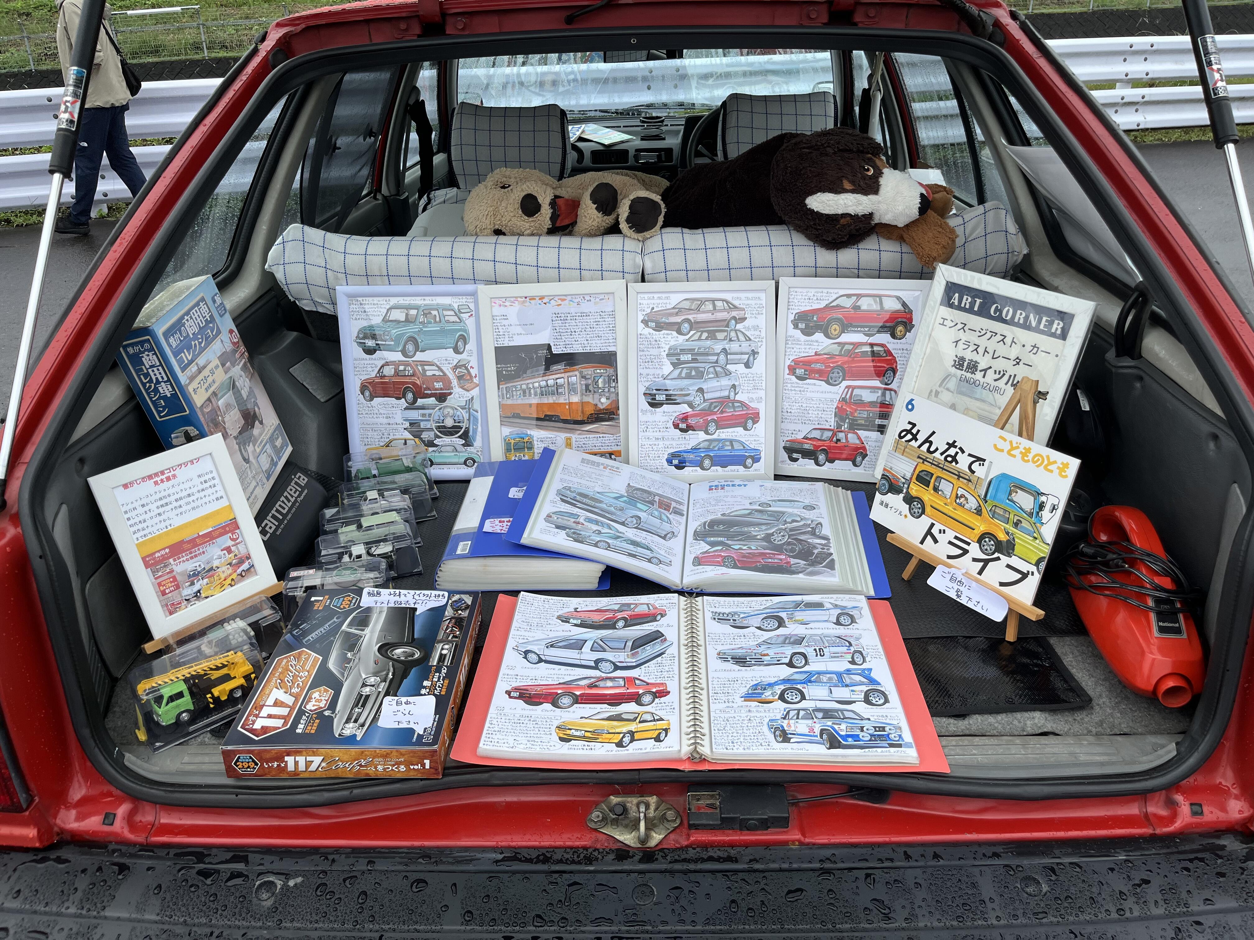 今回のミーティングに協賛していたカーイラストレーター、遠藤イヅルさんの愛車、サニー・カリフォルニアです。