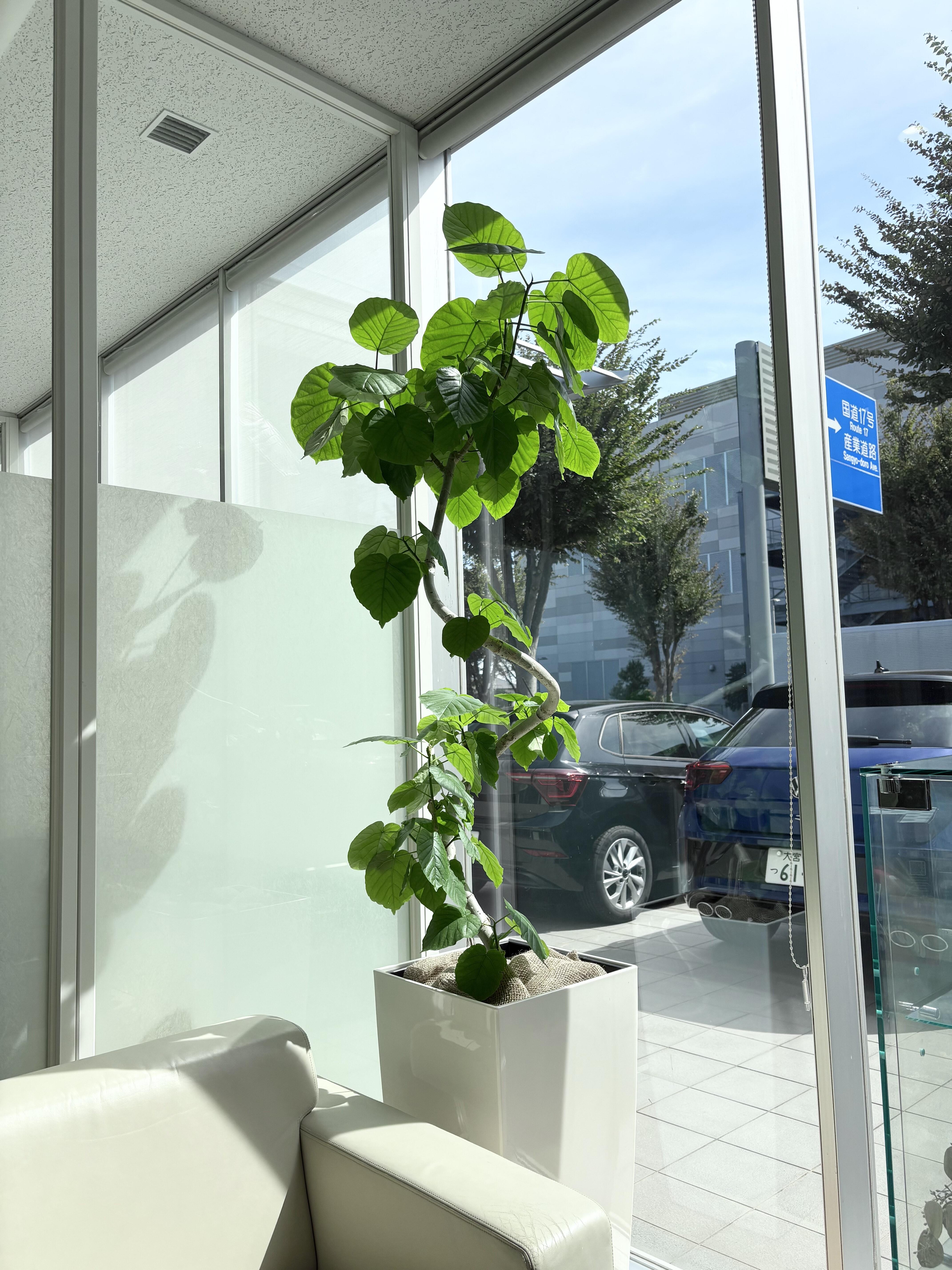 現在ショールームとご納車ルームにあった夏仕様の植木が、今月から変わりました