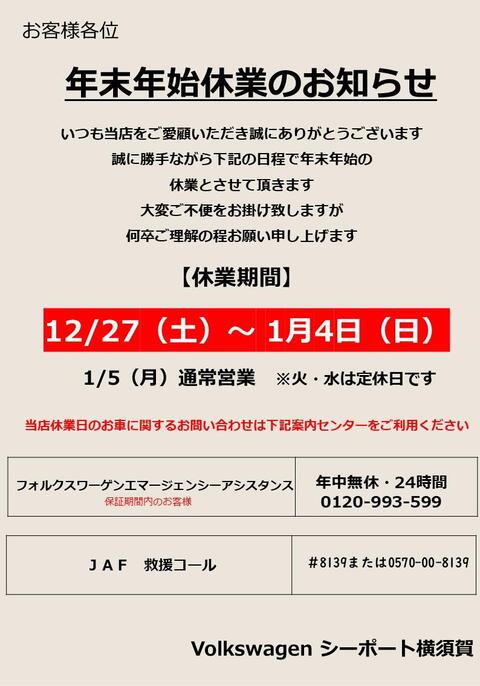 さて本日は年末年始のお休みです12月27日からお休みです1月4日までとなります
