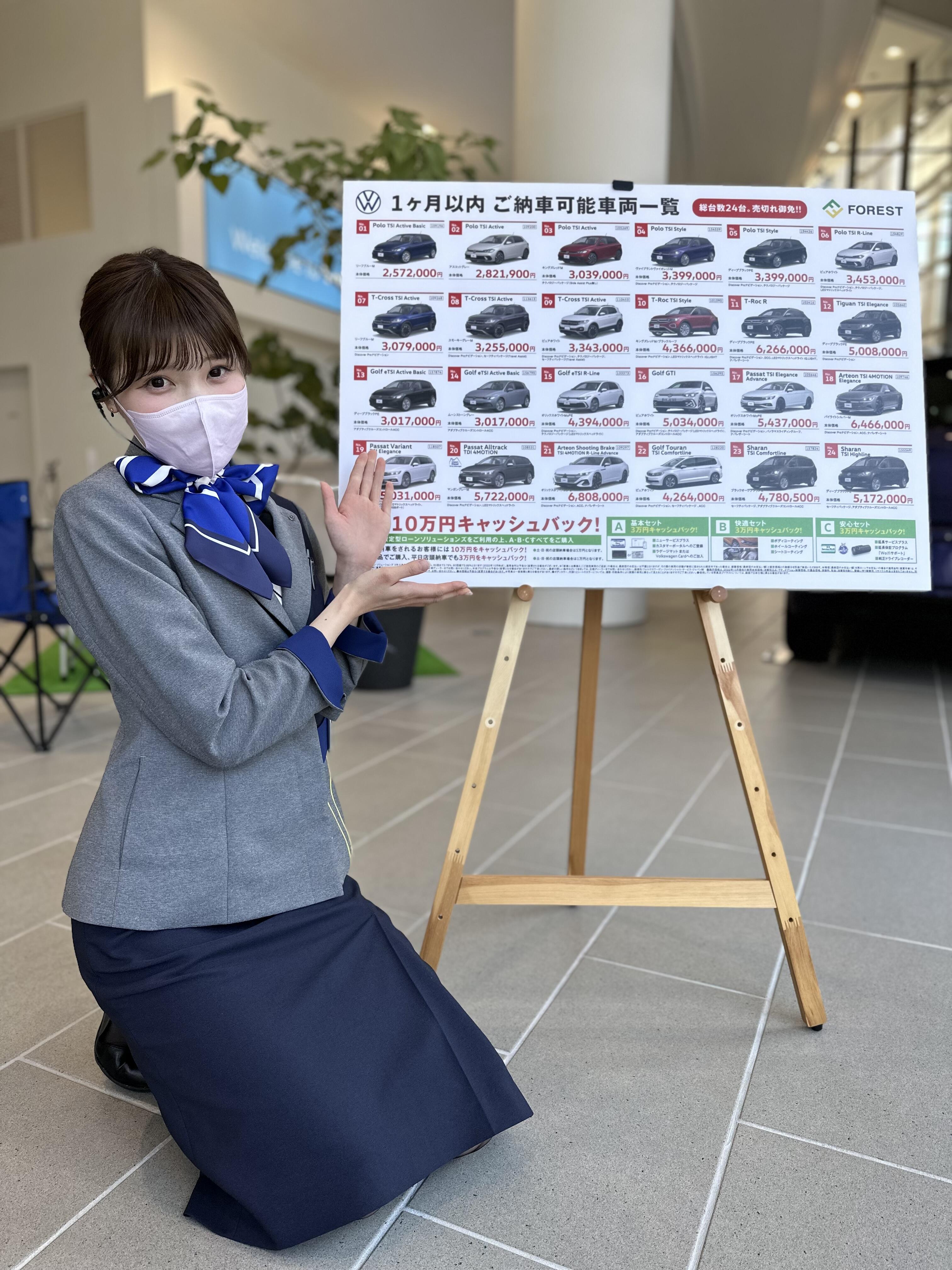 1ヶ月以内ご納車可能車両一覧を店内に掲示いたしておりますので、