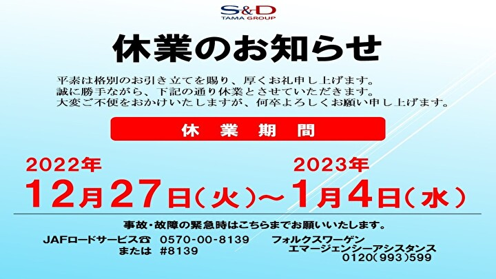 長期休暇中は駐車場に展示車、試乗車を並べるため