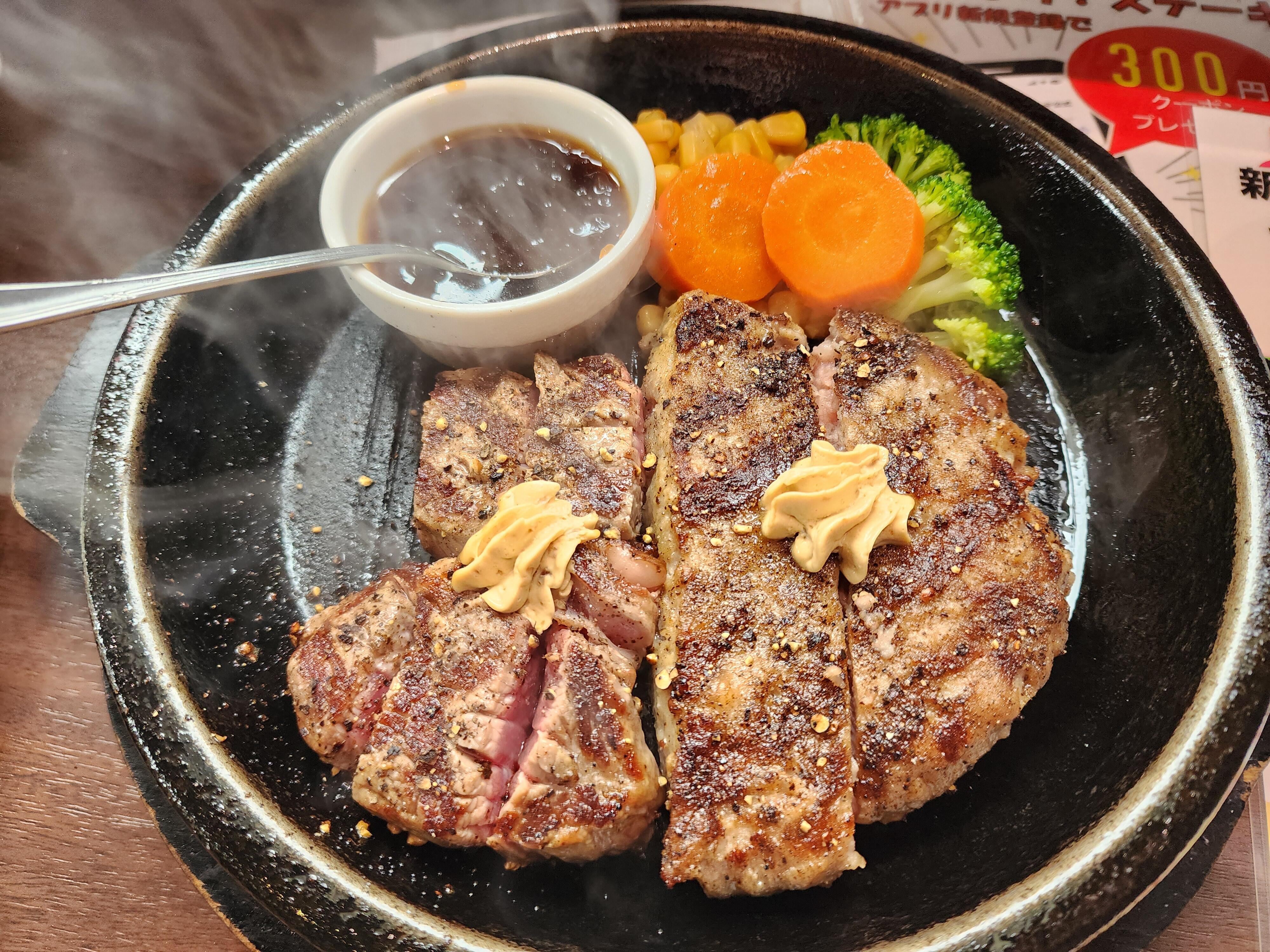 お店は桶狭間の辺りにあります、昔はいっぱい店舗があったのですが、今は物凄く減ったステーキ屋です。