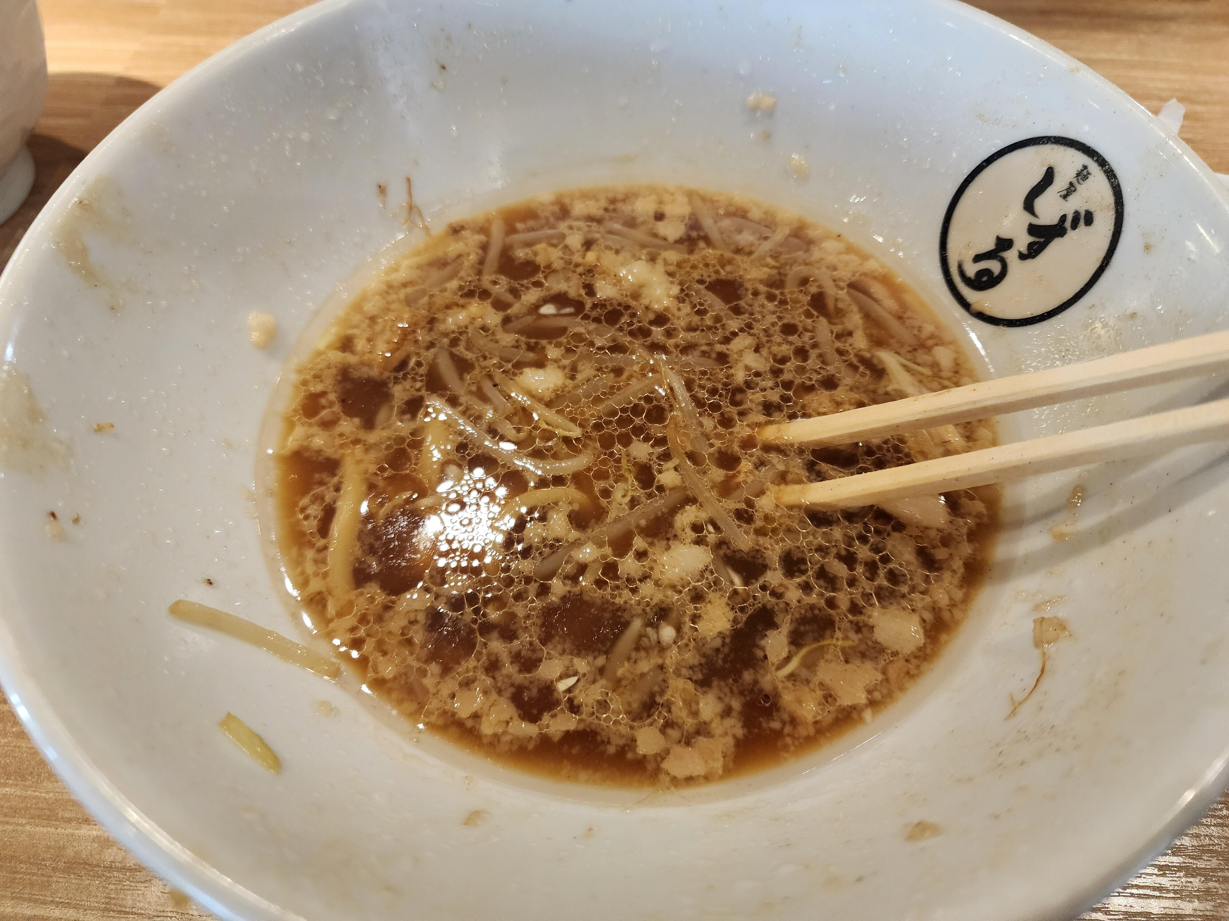 終盤、麺もあと3,4口で食べ終わるかなという段階まで来ました。