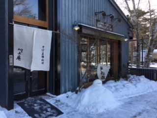 軽井沢の川上庵というお蕎麦屋さんです。和とモダンが融合した、雰囲気があるお店でお奨めです。