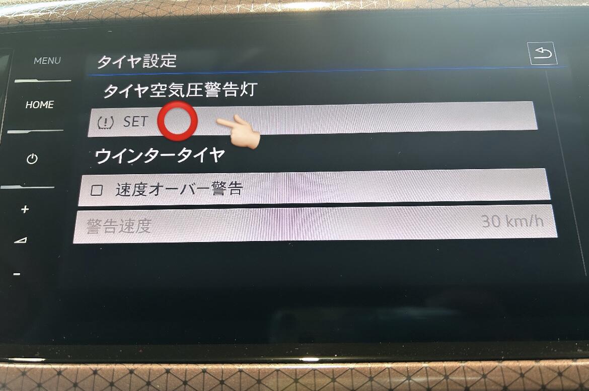 5 : タイヤ空気圧警告灯のSETをタッチ