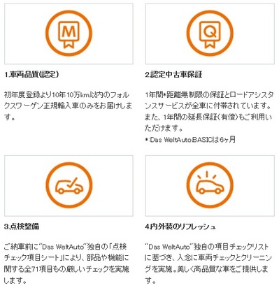 そして2012年1月からフォルクスワーゲン、世界統一の新認定中古車ブランド"Das WeltAuto"を導入し更なる安心感をもたらす制度ができました![]()