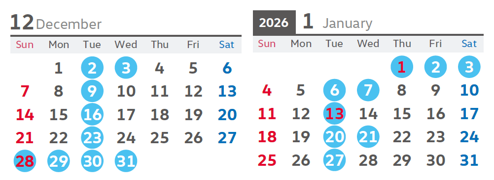 **12月の営業日程のご案内**
