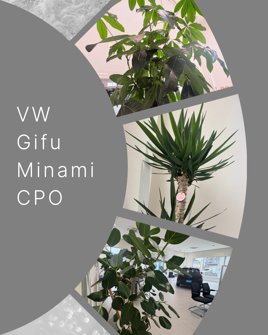 Volkswagen 岐阜南認定センターのショールームでも、観葉植物を育てております