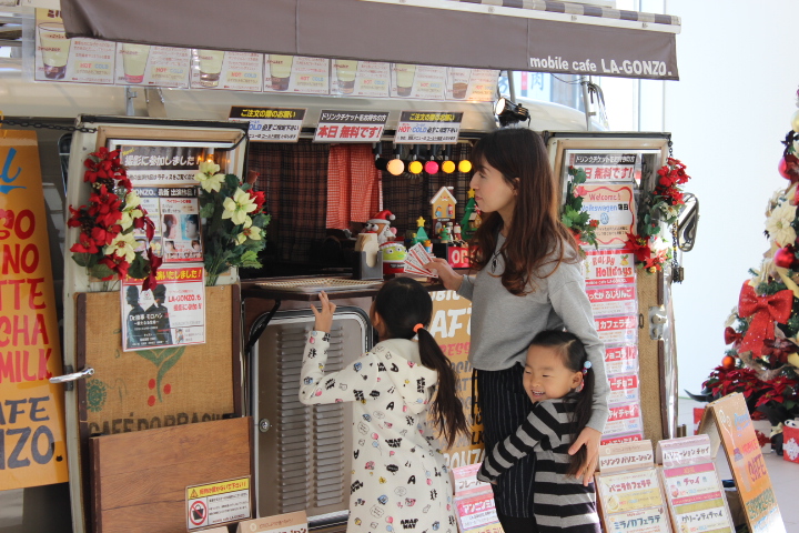 種類豊富なメニューに迷ってしまい、お母さんに抱きつくお子様にキュン