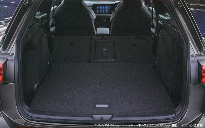 ラゲージスペースは、Golfの380Lに比べ、余裕ある611Lを確保しております