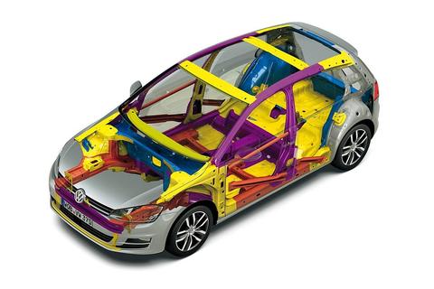 皆様!こんにちは! 今回は、フォルクスワーゲンのボディ造りについてご紹介をいたします! こちらは、ボディに使用されている鋼鈑を強度別に色分けしたものです。 紫色と赤色は、『超高張力鋼鈑』を使用しています! ちょうど、キャビンと、エンジンルームスペースに多く使用されていますね! 先日、フォルクスワーゲン本社へ行ったときに、見本の写真を撮ってきました! この赤い部分の鋼鈑にシートががっちり!ついているんです! 全体的にみるとこんな感じ・・・ この緻密に計算しつくされた設計によって、フォルクスワーゲンの 素晴らしいボディ剛性が発揮されているんですね!