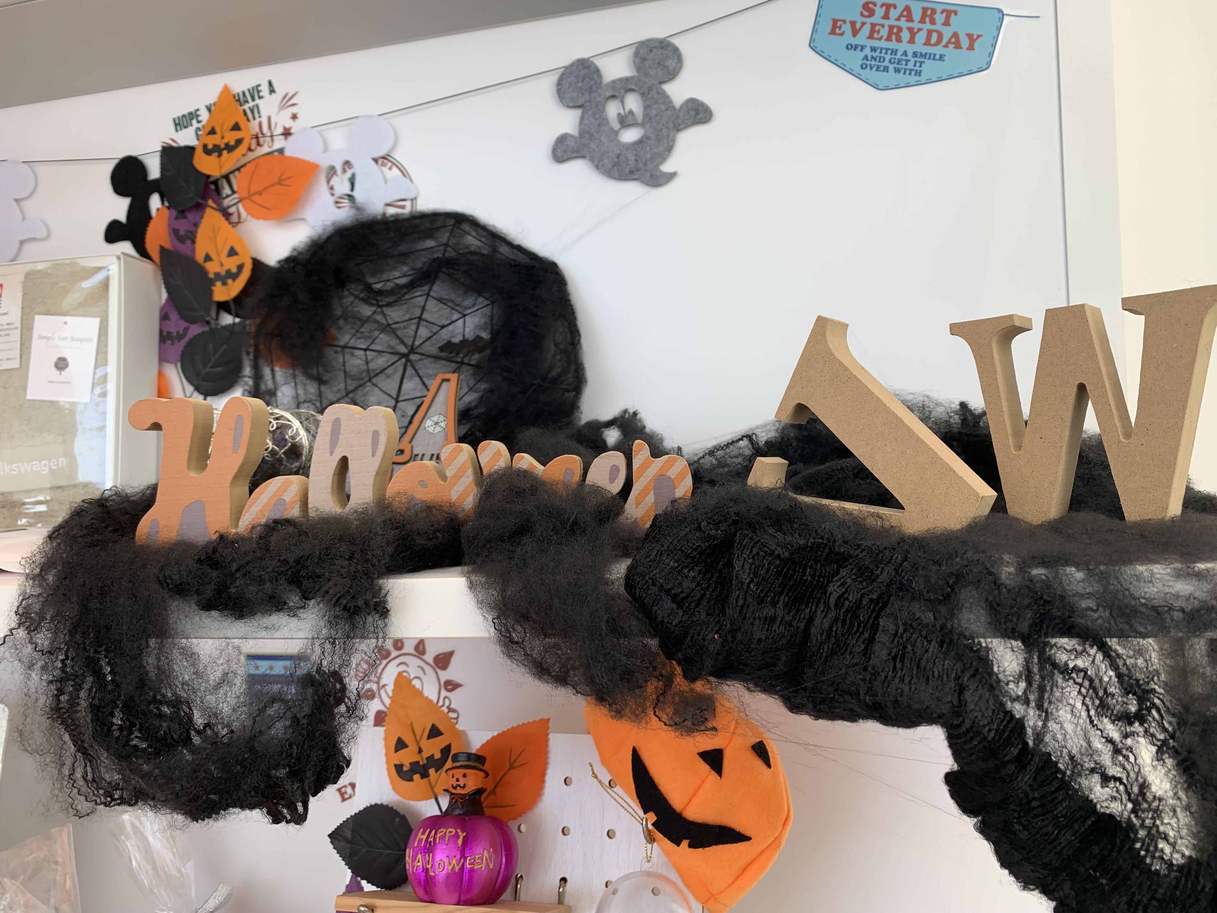 夏っぽく爽やかな装飾から、一気に秋っぽいダークな感じへと変身しました