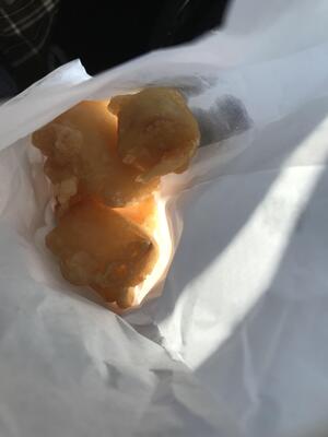 なんとか持って帰れないものかと考えたのですが、せっかくの衣がべちゃってなるよと言われて断念
