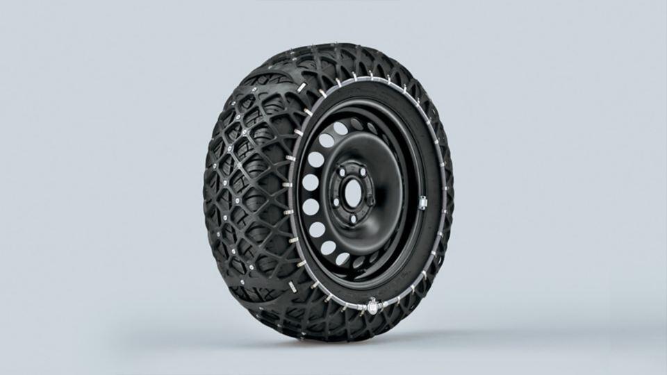 不快なノイズや振動を最小限に抑えた非金属スノーチェーン。トレッド面にくまなく配した超硬スパイクピンが雪路を確実にとらえます