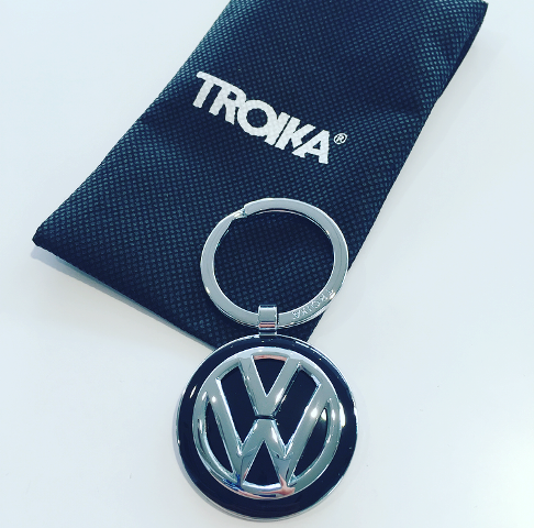 フォルクスワーゲンのエンブレムロゴを中央にあしらった丸形のキーリング![]()