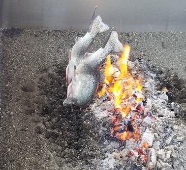そして、スタッフさんがさばいてくれまして、炭火で塩焼きに